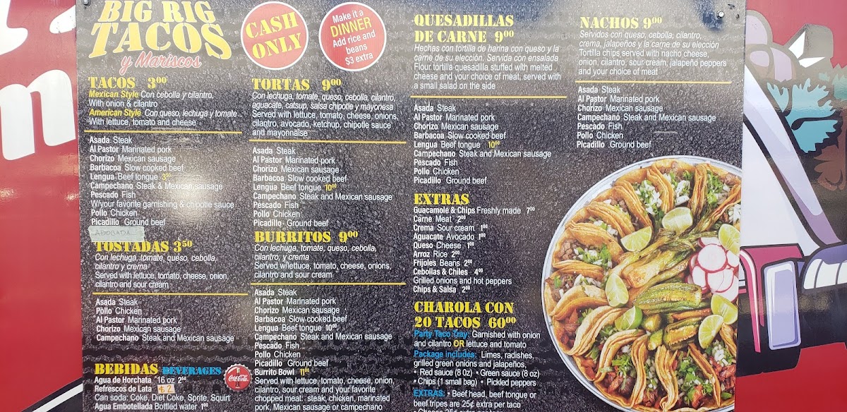 Pair your meal with a refreshing canned soda or a Monster Energy drink, and don’t miss the horchata—a highly recommended drink that rounds out a perfect meal. Visit Big Rig Tacos to indulge in a flavorful taco getaway!